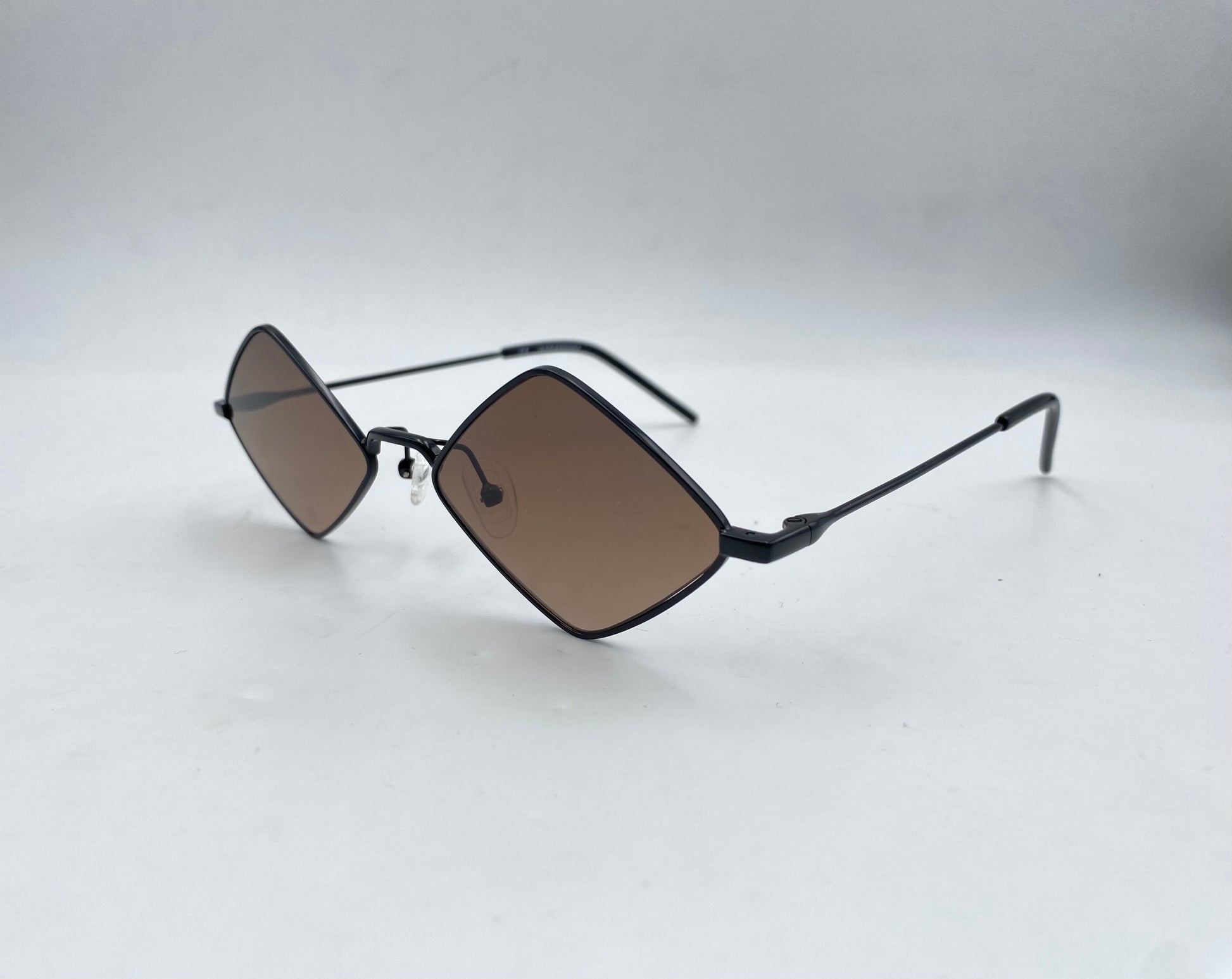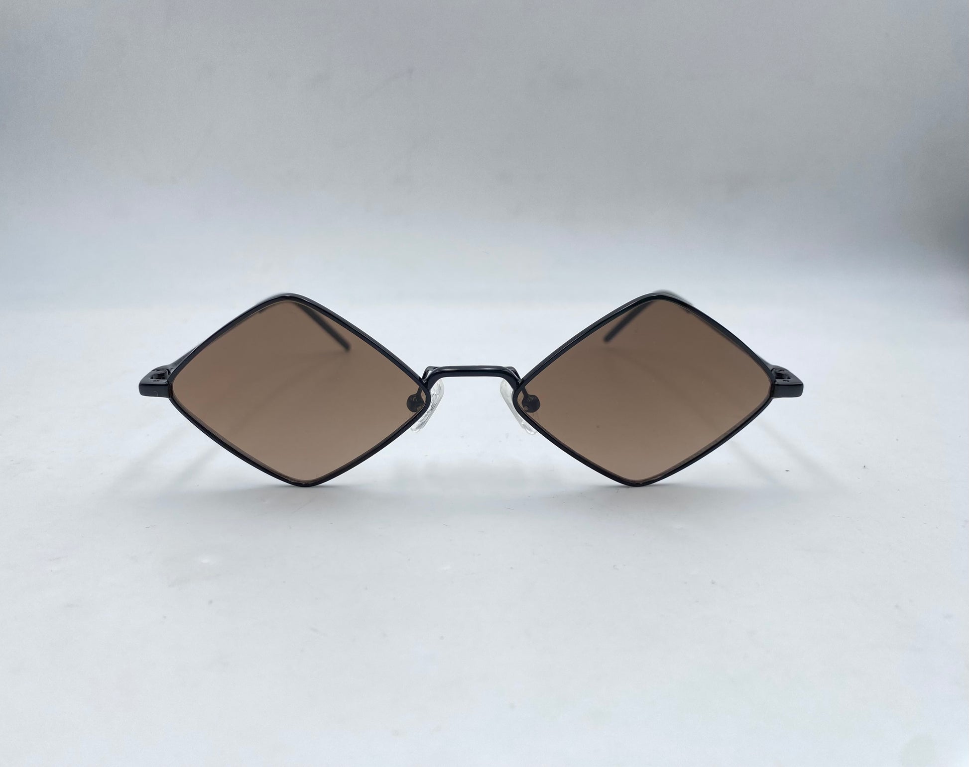 Occhiale da sole Saraghina in metallo. Frontale a forma romboidale nero con lenti sfumate marroni. Aste leggere e confortevoli e comodi naselli regolabili.